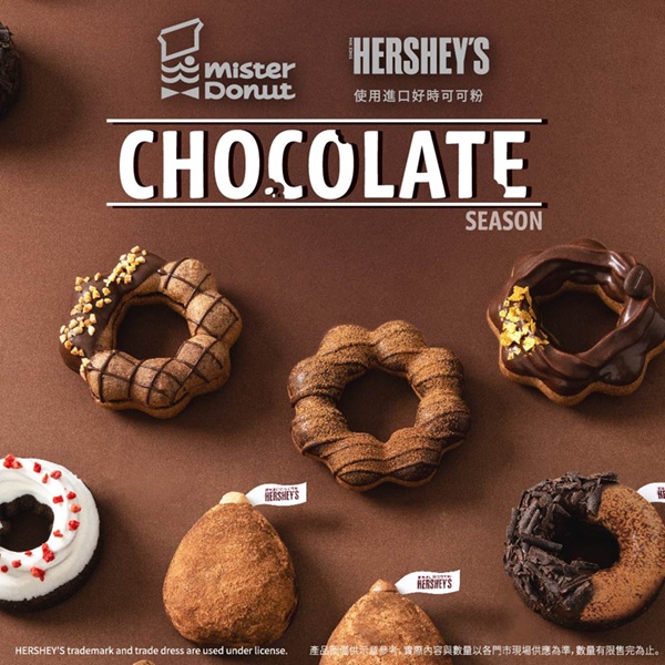 今年冬季 Mister Donut 攜手美國百年經典巧克力品牌「HERSHEY'S 好時」